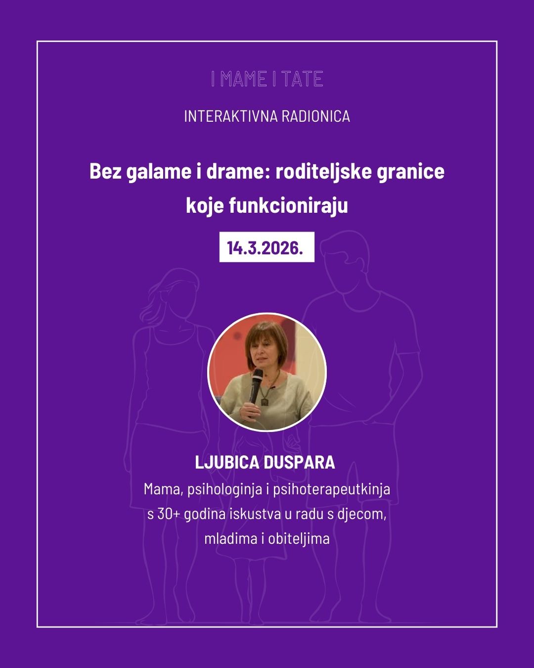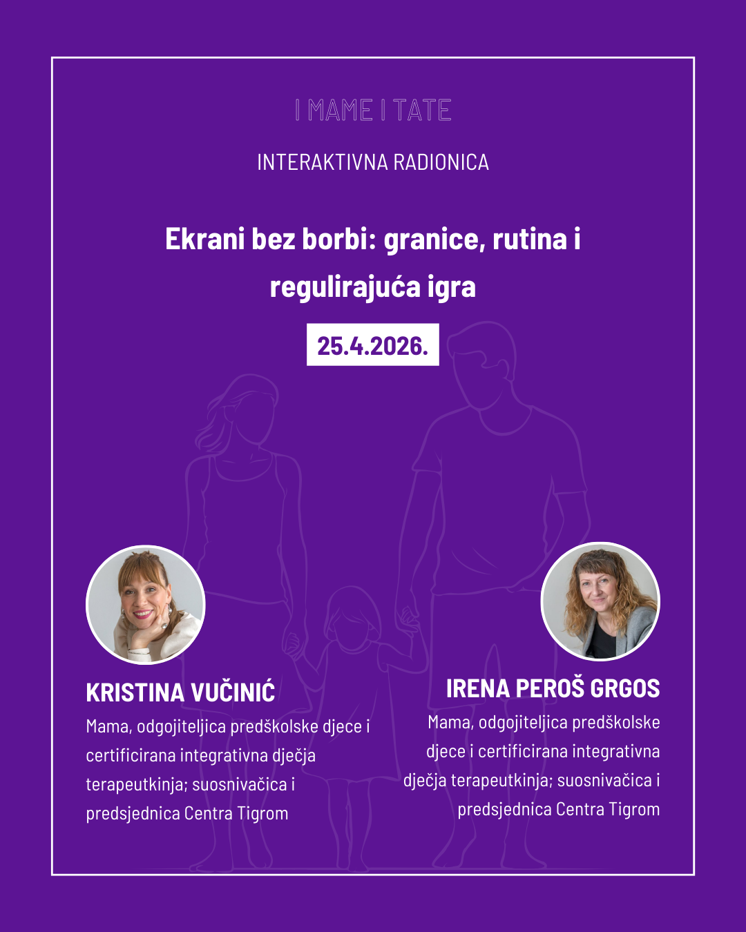 Radionica je zamišljena kao kombinacija teorije, odgovaranja na vaša pitanja te rada u manjim skupinama i zajedničkog promišljanja, u sigurnom i podržavajućem okruženju, uz naglasak na realne situacije iz obiteljskog života i konkretne roditeljske rečenice koje pomažu u razgovoru.